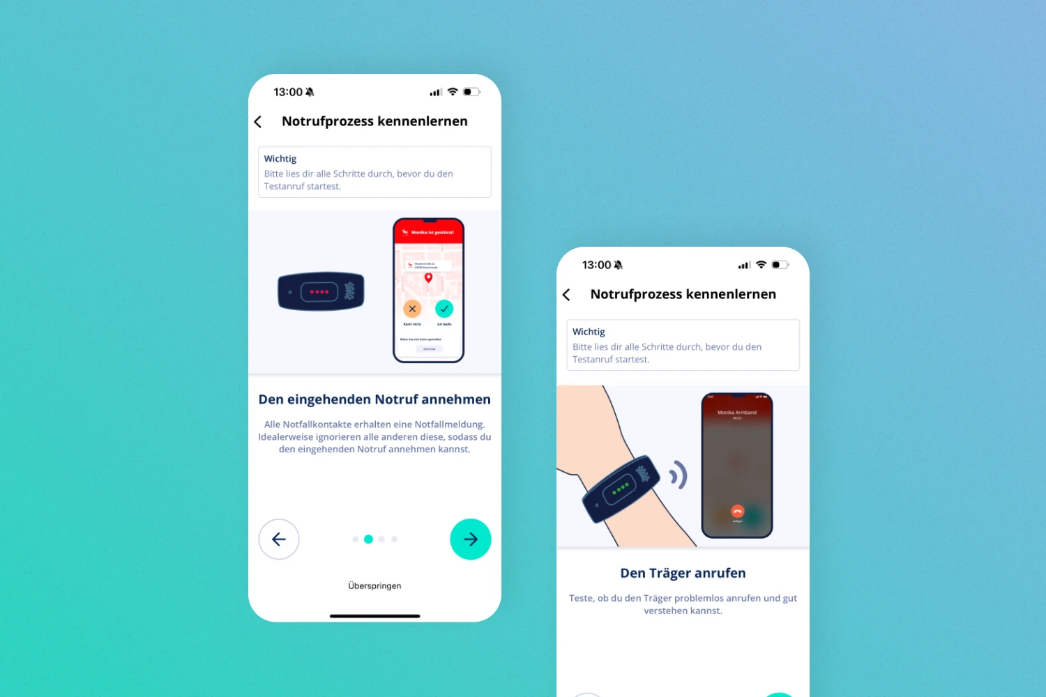 Notfälle sind Ausnahmezustände. Menschen handeln unter Angst und Zeitdruck. Das Zusammenspiel aus Armband, Notruffunktion und App musste absolut verlässlich sein.